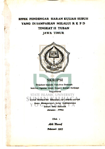 | Additional Information / Supervisor: | Drs. Tolhah Tirto Menggolo dan Drs. H. Hasan Baihaqi Af - Digitalisasi |