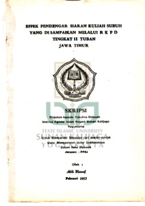 Abdi Manaf, NIM.: 02852061 (1993) EFEK PENDENGAR SIARAN KULIAH SUBUH YANG DI SAMPAIKAN MELALUI RKPD TINGKAT II TUBAN JAWA TIMUR. Skripsi thesis, UIN SUNAN KALIJAGA YOGYAKARTA.