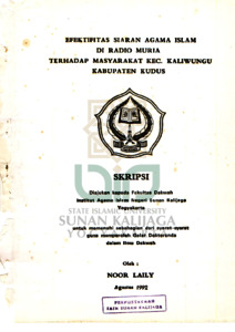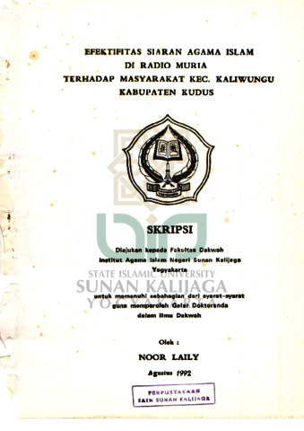 Noor Laily, NIM.: 00863300 (1992) EFEKTIVITAS SIARAN AGAMA ISLAM DI RADIO MURIA TERHADAP MASYARAKAT KECAMATAN KALIWUNGU KABUPATEN KUDUS. Skripsi thesis, UIN SUNAN KALIJAGA YOGYAKARTA.