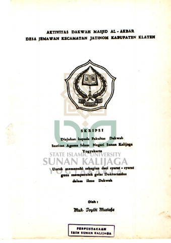 Muh. Toyibi Mustofa, NIM.: 02830275 (1991) AKTIVITAS DAKWAH MASJID AL AKBAR DESA JEMAWAN KECAMATAN JATINOM KABUPATEN KLATEN. Skripsi thesis, UIN SUNAN KALIJAGA YOGYAKARTA.