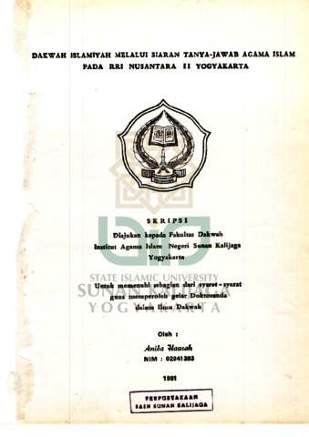 Text (DAKWAH ISLAMIYAH MELALUI SIARAN TANYA JAWAB AGAMA ISLAM PADA RRI NUSANTARA II YOGYAKARTA)