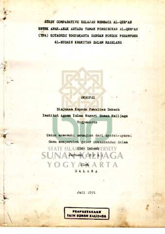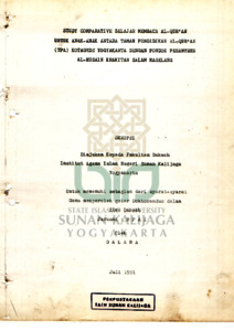 Dalana, NIM.: 02851799 (1991) STUDY COMPARATIVE BELAJAR MEMBACA AL-QUR’AN UNTUK ANAK-ANAK ANTARA TPA KOTAGEDE YOGYAKARTA DENGAN PONDOK PESANTREN AL-HUSAIN KRAKITAN SALAM MAGELANG. Skripsi thesis, UIN SUNAN KALIJAGA YOGYAKARTA.
