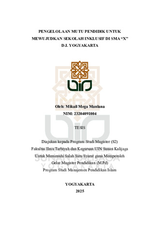 Mikail Mega Maulana, NIM.: 23204091004 (2025) PENGELOLAAN MUTU PENDIDIK UNTUK MEWUJUDKAN SEKOLAH INKLUSIF DI SMA “X” D.I. YOGYAKARTA. Masters thesis, UIN SUNAN KALIJAGA YOGYAKARTA.
