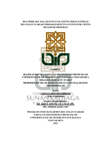 | Uncontrolled Keywords: | Cryptocurrency, Bias Perilaku, Herding, Overconfidence, FOMO Literasi Keuangan Syariah, Investor Muslim, Keputusan Investasi |