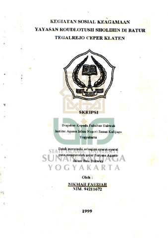 Nikmah Fauziah, NIM.: 94211672 (1999) KEGIATAN SOSIAL KEAGAMAAN YAYASAN ROUDLOTUSH DI BATUR TEGALREJO CEPER KLATEN. Skripsi thesis, UIN SUNAN KALIJAGA YOGYAKARTA.