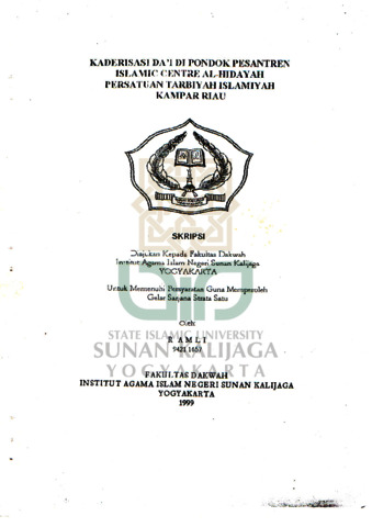 Text (KADERISASI DA'I DI PONDOK PESANTREN ISLAMIC CENTRE AL-HIDAYAH PERSATUAN TARBIYAH ISLAMIYAH KAMPAR RIAU)