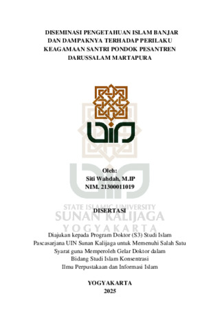 Siti Wahdah, M.IP, NIM.: 21300011019 (2025) DISEMINASI PENGETAHUAN ISLAM BANJAR DAN DAMPAKNYA TERHADAP PERILAKU KEAGAMAAN SANTRI PONDOK PESANTREN DARUSSALAM MARTAPURA. Doctoral thesis, UIN SUNAN KALIJAGA YOGYAKARTA.