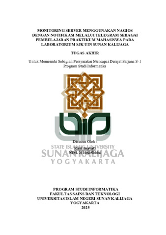 Text (MONITORING SERVER MENGGUNAKAN NAGIOS DENGAN NOTIFIKASI MELALUI TELEGRAM SEBAGAI PEMBELAJARAN PRAKTIKUM MAHASISWA PADA LABORATORIUM SJK UIN SUNAN KALIJAGA)