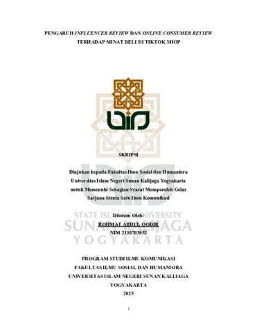 Rohmat Abdul Qodir, NIM.: 2110703052 (2025) PENGARUH INFLUENCER REVIEW DAN ONLINE CONSUMER REVIEW TERHADAP MINAT BELI DI TIKTOK SHOP. Skripsi thesis, UIN SUNAN KALIJAGA YOGYAKARTA.