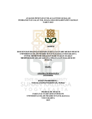 Amanda Nurmaulita, NIM.: 20103040086 (2025) ANALISIS PENETAPAN NILAI GANTI RUGI DALAM PEMBANGUNAN JALAN TOL JOGJA-SOLO DI KABUPATEN SLEMAN TAHUN 2023. Skripsi thesis, UIN SUNAN KALIJAGA YOGYAKARTA.