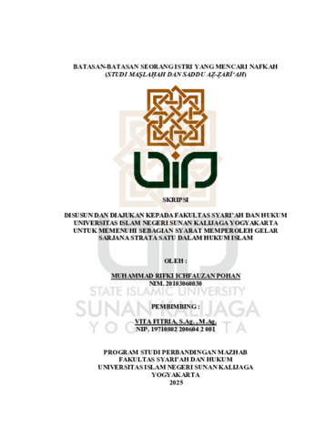 Muhammad Rifki Ichfauzan Pohan, NIM.: 20103060030 (2025) BATASAN-BATASAN SEORANG ISTRI YANG MENCARI NAFKAH (STUDI MASLAHAH DAN SADDU AZ-ZARIAH). Skripsi thesis, UIN SUNAN KALIJAGA YOGYAKARTA.