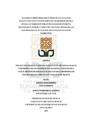 Text (ANALISIS YURIDIS PERJANJIAN PEMANFAATAN TANAH KASULTANAN DAN TANAH KADIPATEN OLEH PIHAK KETIGA (TINJAUAN TERHADAP PERATURAN DAERAH ISTIMEWA YOGYAKARTA NOMOR 1 TAHUN 2017 TENTANG PENGELOLAAN DAN PEMANFAATAN TANAH KASULTANAN DAN TANAH KADIPATEN))