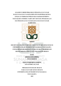 Amalia Nur Sabrina, NIM.: 21103040182 (2025) ANALISIS YURIDIS PERJANJIAN PEMANFAATAN TANAH KASULTANAN DAN TANAH KADIPATEN OLEH PIHAK KETIGA (TINJAUAN TERHADAP PERATURAN DAERAH ISTIMEWA YOGYAKARTA NOMOR 1 TAHUN 2017 TENTANG PENGELOLAAN DAN PEMANFAATAN TANAH KASULTANAN DAN TANAH KADIPATEN). Skripsi thesis, UIN SUNAN KALIJAGA YOGYAKARTA.
