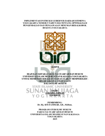 Zakaria Sahlan, NIM.: 21103040191 (2025) IMPLEMENTASI INSTRUKSI GUBERNUR DAERAH ISTIMEWA YOGYAKARTA NOMOR 5 TAHUN 2024 TENTANG OPTIMALISASI PENGENDALIAN DAN PENGAWASAN MINUMAN BERALKOHOL DI KOTA YOGYAKARTA. Skripsi thesis, UIN SUNAN KALIJAGA YOGYAKARTA.