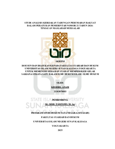 Khoiril Anam, NIM.: 21103070083 (2025) STUDI ANALISIS KEBIJAKAN TABUNGAN PERUMAHAN RAKYAT DALAM PERATURAN PEMERINTAH NOMOR 21 TAHUN 2024: TINJAUAN MASLAHAH MURSALAH. Skripsi thesis, UIN SUNAN KALIJAGA YOGYAKARTA.