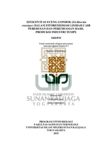 Ema Qorri Aina, NIM.: 19106040051 (2025) EFEKTIVITAS ECENG GONDOK (Eichhornia crassipes) DALAM FITOREMEDIASI LIMBAH CAIR PEREBUSAN DAN PERENDAMAN HASIL PRODUKSI INDUSTRI TEMPE. Skripsi thesis, UIN SUNAN KALIJAGA YOGYAKARTA.