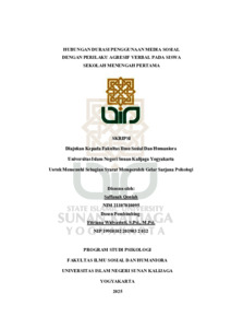 Saffanah Qoniah, NIM.: 21107010095 (2025) HUBUNGAN DURASI PENGGUNAAN MEDIA SOSIAL DENGAN PERILAKU AGRESIF VERBAL PADA SISWA SEKOLAH MENENGAH PERTAMA. Skripsi thesis, UIN SUNAN KALIJAGA YOGYAKARTA.