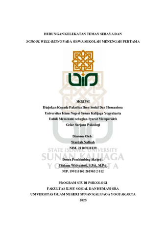 Text (HUBUNGAN KELEKATAN TEMAN SEBAYA DAN SCHOOL WELL-BEING PADA SISWA SEKOLAH MENENGAH PERTAMA)