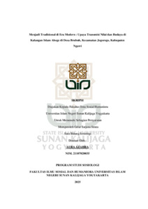 Aura Azahra, NIM.: 21107020035 (2025) MENJADI TRADISIONAL DI ERA MODERN : UPAYA TRANSMISI NILAI DAN BUDAYA DI KALANGAN ISLAM ABOGE DI DESA BRUBUH, KECAMATAN JOGOROGO, KABUPATEN NGAWI. Skripsi thesis, UIN SUNAN KALIJAGA YOGYAKARTA.