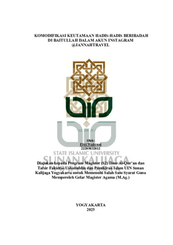 Text (KOMODIFIKASI KEUTAMAAN HADIS-HADIS BERIBADAH DI BAITULLAH DALAM AKUN INSTAGRAM @JANNAHTRAVEL)
