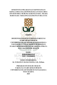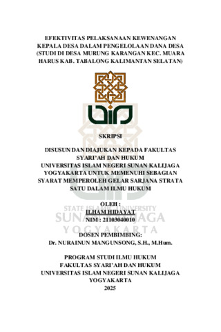 Ilham Hidayat, NIM.: 21103040010 (2025) EFEKTIVITAS PELAKSANAAN KEWENANGAN KEPALA DESA DALAM PENGELOLAAN DANA DESA (STUDI DI DESA MURUNG KARANGAN KEC. MUARA HARUS KAB. TABALONG KALIMANTAN SELATAN). Skripsi thesis, UIN SUNAN KALIJAGA YOGYAKARTA.