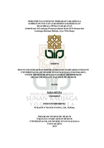 Text (PERLINDUNGAN HUKUM TERHADAP NARAPIDANA KORBAN PUNGUTAN LIAR DISERTAI KEKERASAN DI LEMBAGA PEMASYARAKATAN (Studi Kasus di Lembaga Pemasyarakatan Kelas II B Sleman dan Lembaga Bantuan Hukum Arya Wira Raja))