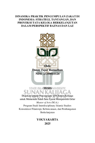 Donny Fajar Ramadhan, NIM.: 23200011124 (2025) DINAMIKA PRAKTIK PENGUMPULAN ZAKAT DI INDONESIA: STRATEGI, TANTANGAN, DAN PROYEKSI TATA KELOLA BERKELANJUTAN DALAM PERSPEKTIF BAZNAS DAN LAZ. Masters thesis, UIN SUNAN KALIJAGA YOGYAKARTA.