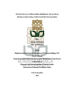 Agustin Wulandari, NIM:: 23200011031 (2025) PENGELOLAAN STRES KERJA BERBASIS NILAI-NILAI BUDAYA JAWA PADA GURU PAUD DI YOGYAKARTA. Masters thesis, UIN SUNAN KALIJAGA YOGYAKARTA.