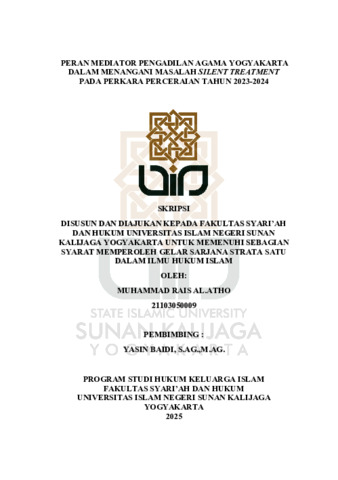 Muhammad Rais Al.Atho, NIM.: 21103050009 (2025) PERAN MEDIATOR PENGADILAN AGAMA YOGYAKARTA DALAM MENANGANI MASALAH SILENT TREATMENT PADA PERKARA PERCERAIAN TAHUN 2023-2024. Skripsi thesis, UIN SUNAN KALIJAGA YOGYAKARTA.