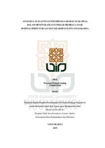 Prayumi Wikanti Asning, NIM.: 23200011054 (2025) ANALISIS LAYANAN PUSAT INFORMASI SAHABAT ANAK (PISA) DALAM MENINGKATKAN LITERASI MEMBACA ANAK DI DINAS PERPUSTAKAAN DAN KEARSIPAN KOTA YOGYAKARTA. Masters thesis, UIN SUNAN KALIJAGA YOGYAKARTA.