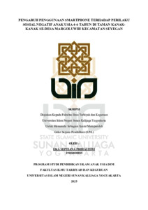 Eka Septiana Prihastiwi, NIM.: 19104030085 (2025) PENGARUH PENGGUNAAN SMARTPHONE TERHADAP PERILAKU SOSIAL NEGATIF ANAK USIA 4-6 TAHUN DI TAMAN KANAKKANAK SE-DESA MARGOLUWIH KECAMATAN SEYEGAN. Skripsi thesis, UIN SUNAN KALIJAGA YOGYAKARTA.