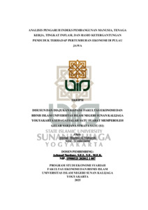 Text (ANALISIS PENGARUH INDEKS PEMBANGUNAN MANUSIA, TENAGA KERJA, TINGKAT INFLASI, DAN RASIO KETERGANTUNGAN PENDUDUK TERHADAP PERTUMBUHAN EKONOMI DI PULAU JAWA)