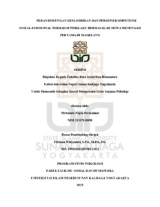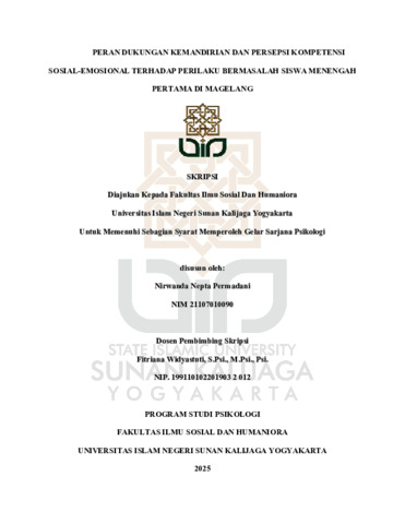 Nirwanda Nepta Permadani, NIM.: 21107010090 (2025) PERAN DUKUNGAN KEMANDIRIAN DAN PERSEPSI KOMPETENSI SOSIAL-EMOSIONAL TERHADAP PERILAKU BERMASALAH SISWA MENENGAH PERTAMA DI MAGELANG. Skripsi thesis, UIN SUNAN KALIJAGA YOGYAKARTA.