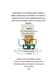 Fitriyana Noor Misadi, NIM.: 21104050004 (2025) PENGEMBANGAN LEMBAR KERJA PESERTA DIDIK (LKPD) DENGAN PENDEKATAN PREDICTOBSERVE- EXPLAIN (POE) BERBASIS SIMULASI PHET PADA MATERI FLUIDA STATIS KELAS XI SMA/MA. Skripsi thesis, UIN SUNAN KALIJAGA YOGYAKARTA.