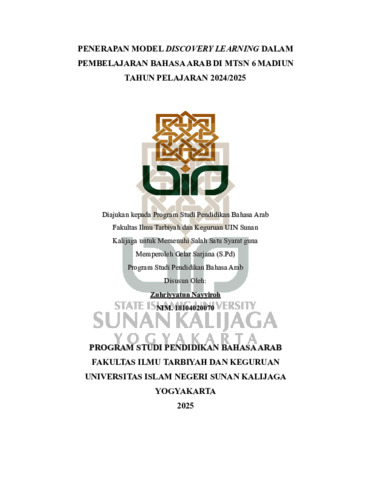 Zuhriyyatun Nayyiroh, NIM..18104020070 (2025) PENERAPAN MODEL DISCOVERY LEARNING DALAM PEMBELAJARAN BAHASA ARAB DI MTSN 6 MADIUN TAHUN PELAJARAN 2024/2025. Skripsi thesis, UIN SUNAN KALIJAGA YOGYAKARTA.