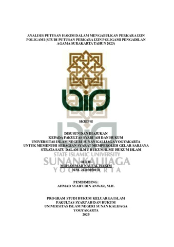 Mohammad Naufal Hakim, NIM.: 21103050078 (2025) ANALISIS PUTUSAN HAKIM DALAM MENGABULKAN PERKARA IZIN POLIGAMI (STUDI PUTUSAN PERKARA IZIN POLIGAMI PENGADILAN AGAMA SURAKARTA TAHUN 2023). Skripsi thesis, UIN SUNAN KALIJAGA YOGYAKARTA.
