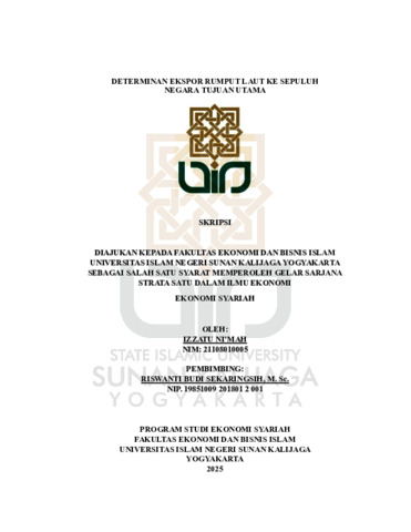 'Izzatu Ni’mah, NIM.: 21108010005 (2025) DETERMINAN EKSPOR RUMPUT LAUT KE SEPULUH NEGARA TUJUAN UTAMA. Skripsi thesis, UIN SUNAN KALIJAGA YOGYAKARTA.