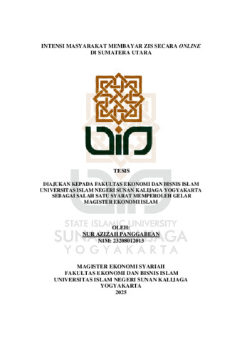 Nur Azizah Panggabean, NIM.: 23208012013 (2025) INTENSI MASYARAKAT MEMBAYAR ZIS SECARA ONLINE DI SUMATERA UTARA. Masters thesis, UIN SUNAN KALIJAGA YOGYAKARTA.