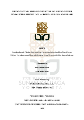 Text (HUBUNGAN ANTARA KECERDASAN SPIRITUAL DAN DUKUNGAN SOSIAL DENGAN KOPING RELIGIUS PADA MAHASISWA MUSLIM DI YOGYAKARTA)