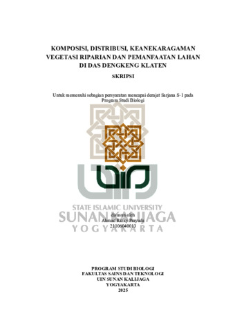 Ahmad Rizky Prayuda, NIM.: 21106040013 (2025) KOMPOSISI, DISTRIBUSI, KEANEKARAGAMAN VEGETASI RIPARIAN DAN PEMANFAATAN LAHAN DI DAS DENGKENG KLATEN. Skripsi thesis, UIN SUNAN KALIJAGA YOGYAKARTA.