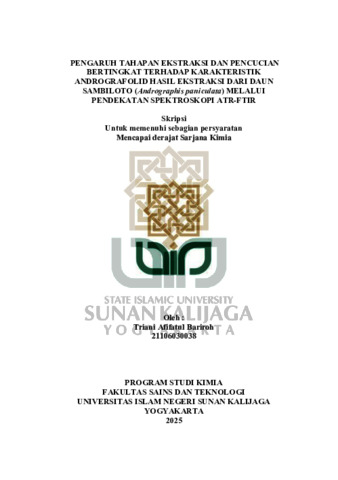 Text (PENGARUH TAHAPAN EKSTRAKSI DAN PENCUCIAN BERTINGKAT TERHADAP KARAKTERISTIK ANDROGRAFOLID HASIL EKSTRAKSI DARI DAUN SAMBILOTO (ANDROGRAPHIS PANICULATA) MELALUI PENDEKATAN SPEKTROSKOPI ATR-FTIR)