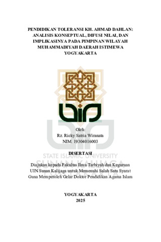 Rz. Ricky Satria Wiranata, NIM.: 19304016003 (2025) PENDIDIKAN TOLERANSI KH. AHMAD DAHLAN: ANALISIS KONSEPTUAL, DIFUSI NILAI, DAN IMPLIKASINYA PADA PIMPINAN WILAYAH MUHAMMADIYAH DAERAH ISTIMEWA YOGYAKARTA. Doctoral thesis, UIN SUNAN KALIJAGA YOGYAKARTA.