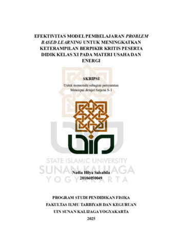 Text (EFEKTIVITAS MODEL PEMBELAJARAN PROBLEM BASED LEARNING UNTUK MENINGKATKAN KETERAMPILAN BERPIKIR KRITIS PESERTA DIDIK KELAS XI PADA MATERI USAHA DAN ENERGI)