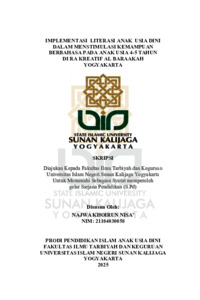 Najwa Khoirun Nisa’, NIM.: 21104030058 (2025) IMPLEMENTASI LITERASI ANAK USIA DINI DALAM MENSTIMULASI KEMAMPUAN BERBAHASA PADA ANAK USIA 4-5 TAHUN DI RA KREATIF AL BARAAKAH YOGYAKARTA. Skripsi thesis, UIN SUNAN KALIJAGA YOGYAKARTA.