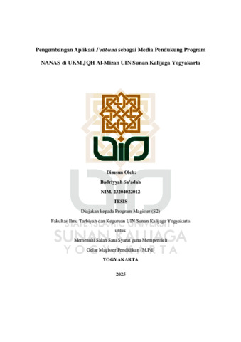 Text (PENGEMBANGAN APLIKASI IRABUNA SEBAGAI MEDIA PENDUKUNG PROGRAM NANAS DI UKM JQH AL-MIZAN UIN SUNAN KALIJAGA YOGYAKARTA)