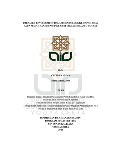 Choirun Nijma, NIM.: 23204032003 (2025) PREPARED ENVIRONMENT DALAM MENDUKUNG KESIAPAN ANAK PADA MASA TRANSISI PAUD KE SD DI FIRDAUS ISLAMIC COURSE. Skripsi thesis, UIN SUNAN KALIJAGA YOGYAKARTA.