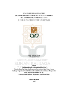 Saddam Husin, NIM.: 23204092045 (2025) STRATEGI PIMPINAN PESANTREN DALAM MENINGKATKAN MUTU PELAYANAN PENDIDIKAN MELALUI PENINGKATAN KINERJA GURU DI PONDOK PESANTREN AN-NUR TANGKIT JAMBI. Masters thesis, UIN SUNAN KALIJAGA YOGYAKARTA.