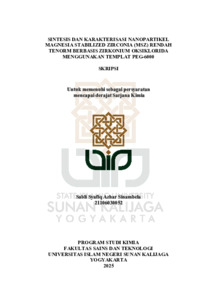 Sabli Syafiq Azhar Sinambela, NIM.: 21106030052 (2025) SINTESIS DAN KARAKTERISASI NANOPARTIKEL MAGNESIA STABILIZED ZIRCONIA (MSZ) RENDAH TENORM BERBASIS ZIRKONIUM OKSIKLORIDA MENGGUNAKAN TEMPLAT PEG-6000. Skripsi thesis, UIN SUNAN KALIJAGA YOGYAKARTA.