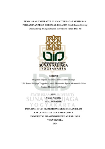 Text (PENOLAKAN NAHDLATUL ULAMA’ TERHADAP KEBIJAKAN PERKAWINAN MASA KOLONIAL BELANDA (Studi Kasus Ontwerp Ordonantie op de Ingeschreven Huwelijken Tahun 1937 M))
