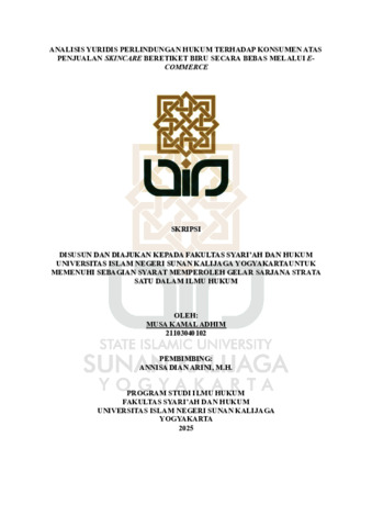 Text (ANALISIS YURIDIS PERLINDUNGAN HUKUM TERHADAP KONSUMEN ATAS PENJUALAN SKINCARE BERETIKET BIRU SECARA BEBAS MELALUI E-COMMERCE)